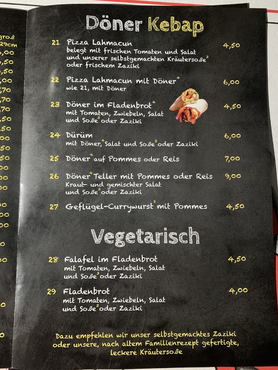 Döner Pizza Haus in Bad Gandersheim offers a flavorful blend of traditional kebab and fast-food delights, ideal for a quick yet satisfying meal. Their standout döner impresses with fresh, intensely flavored vegetables and generous portions, even served atop crispy pommes frites, as praised by satisfied customers. While the lahmacun may occasionally lean toward dryness, the overall menu remains consistently delicious and reasonably priced. The sauces complement the dishes perfectly, enhancing the rich taste profiles. The restaurant maintains a clean environment and delivers friendly, attentive service that enhances the dining experience. Though the ambiance might be modest, it fits well with the casual and convenient nature of the spot. Whether stopping by for a quick lunch or a late snack—even past closing time—Döner Pizza Haus provides dependable quality and a genuine taste of fast-food kebab culture that keeps locals and visitors coming back for more.